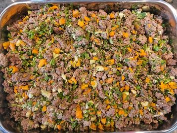 I don’t just feed my dogs high-quality kibble—I level it up. I add nutritious toppers, homemade meals, healthy seeds, and other nourishing ingredients to support their health from the inside out. Here are a few of my go-to, budget-friendly recipes that my dogs love and that help keep them thriving.